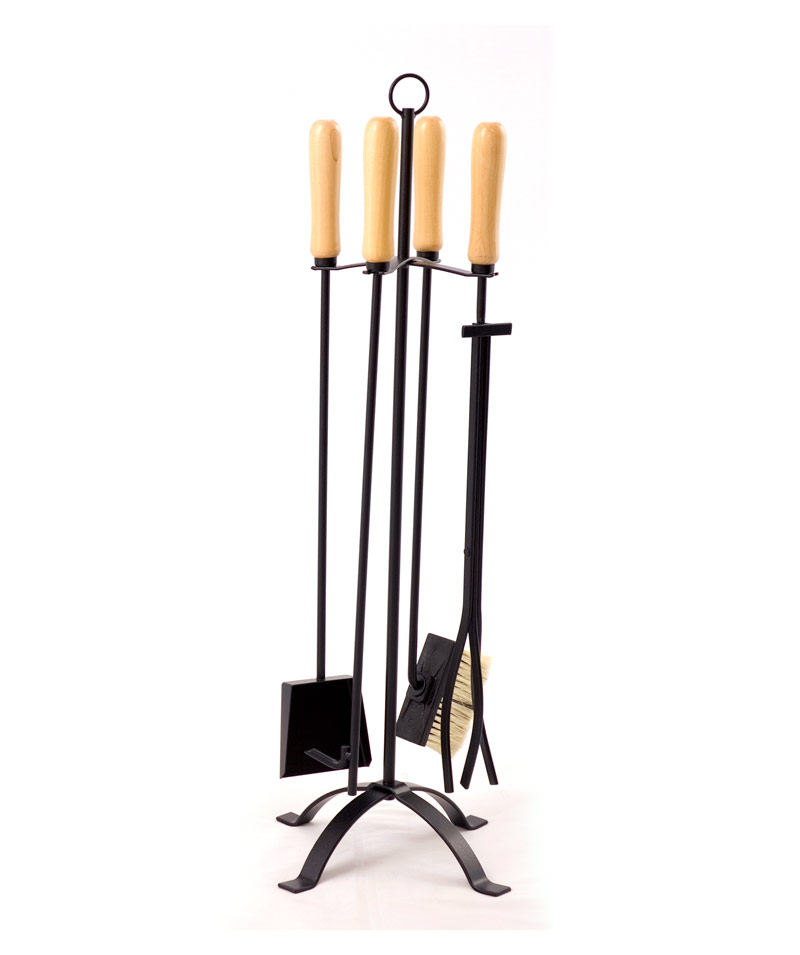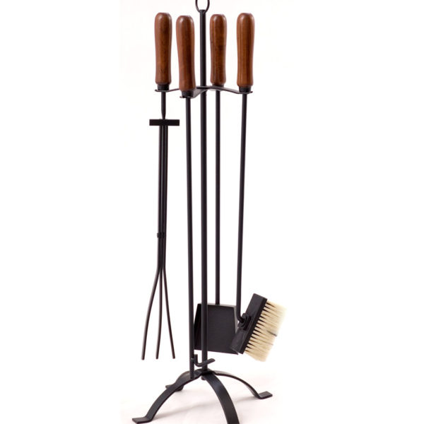 Conjunto de acessórios para lenha com design clássico. Combina com a maioria dos ambientes. Produzido em aço com acabamento negro micro texturizado e detalhes em madeira clara ou escura.