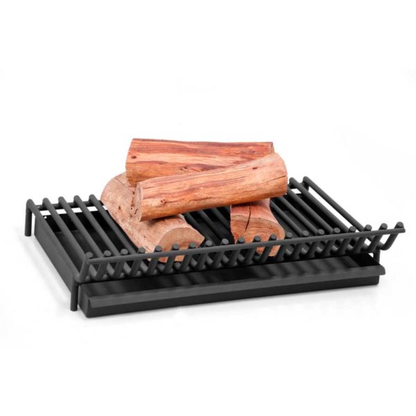 Queimador de fundo para lareiras de alvenaria pequeno. Produzido em aço com acabamento negro micro texturizado.
